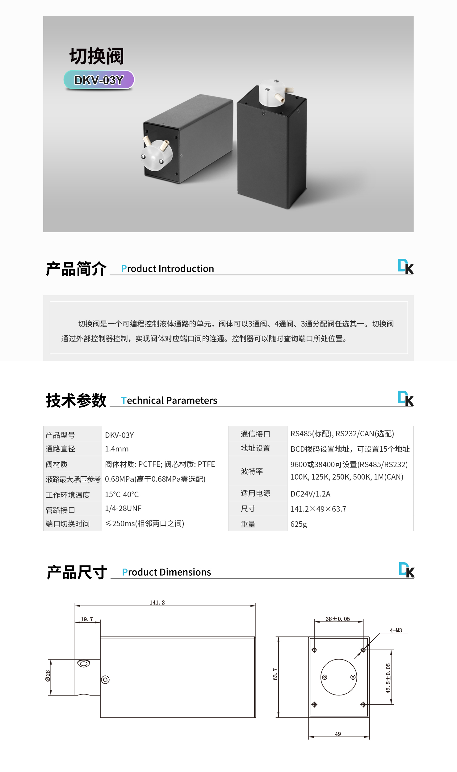 切換閥是一個(gè)可編程控制液體通路的單元,閥體可以3通閥、4通閥、3通分配閥任選其一。切換閥 通過(guò)外部控制器控制,實(shí)現(xiàn)閥體對(duì)應(yīng)端口間的連通。控制器可以隨時(shí)查詢端口所處位置。